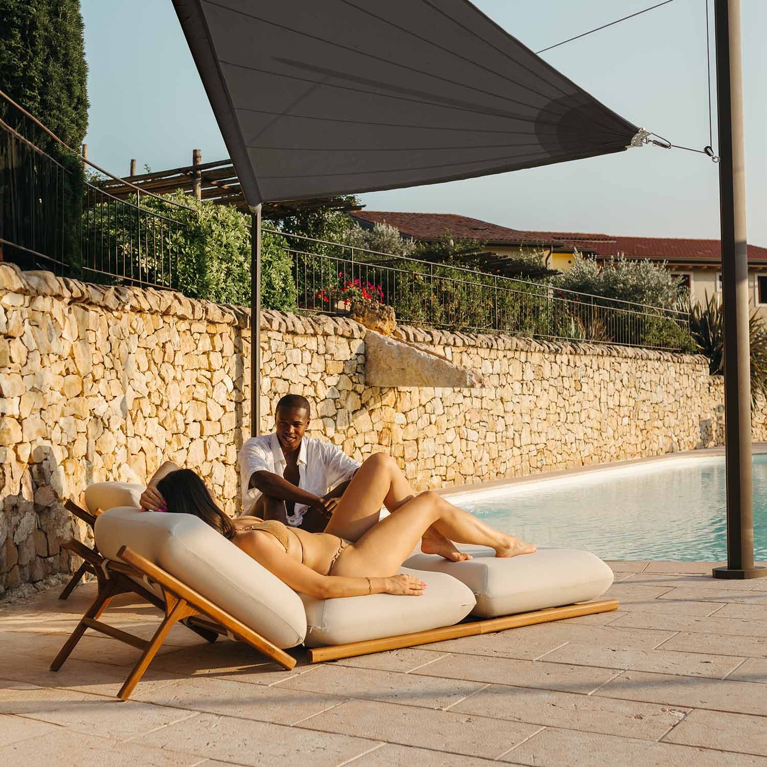 Genießen Sie jeden Moment im Freien, sorgenfrei. Frischer Schatten, wann Sie ihn wünschen, automatischer Schutz sobald nötig. Zefira lässt sich überall montieren, ganz ohne Kabel, ohne Bauarbeiten, und wird direkt durch Sonnenenergie betrieben. Bei Wind zieht der integrierte Sensor die Segel automatisch ein, wenn nötig. Null Aufwand, maximale Freiheit.