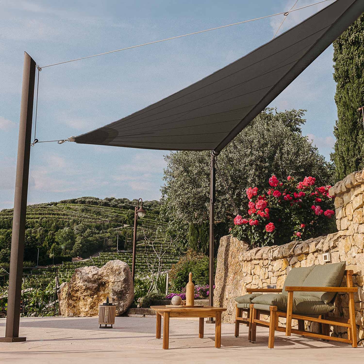 Dieses elektrische Sonnensegel benötigt speziell von Maanta entwickelte Masten mit Platten, die für das motorisierte Befestigungssystem ausgelegt sind. Wenn Sie bereits andere Masten besitzen, können diese leider nicht mit Zefira verwendet werden.