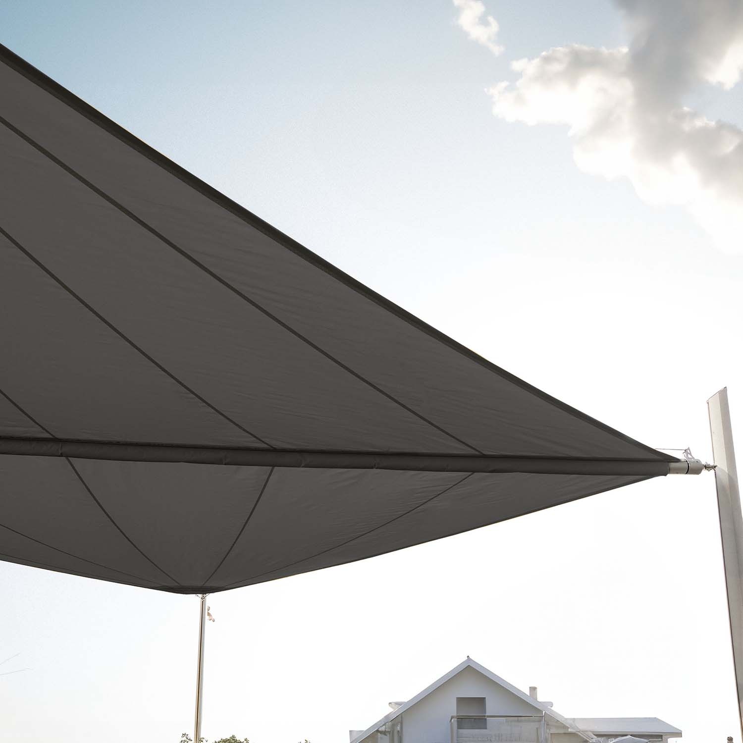Sie können Ihr elektrisches Sonnensegel Zefira das ganze Jahr über montiert lassen. Edelstahl und das Purishade®-Gewebe sind beständig gegen Regen, Frost und Witterung. Maanta entwickelt automatische Sonnensegel, die für eine lange Lebensdauer im Außenbereich konzipiert sind – ein saisonaler Abbau ist empfohlen, aber nicht zwingend.