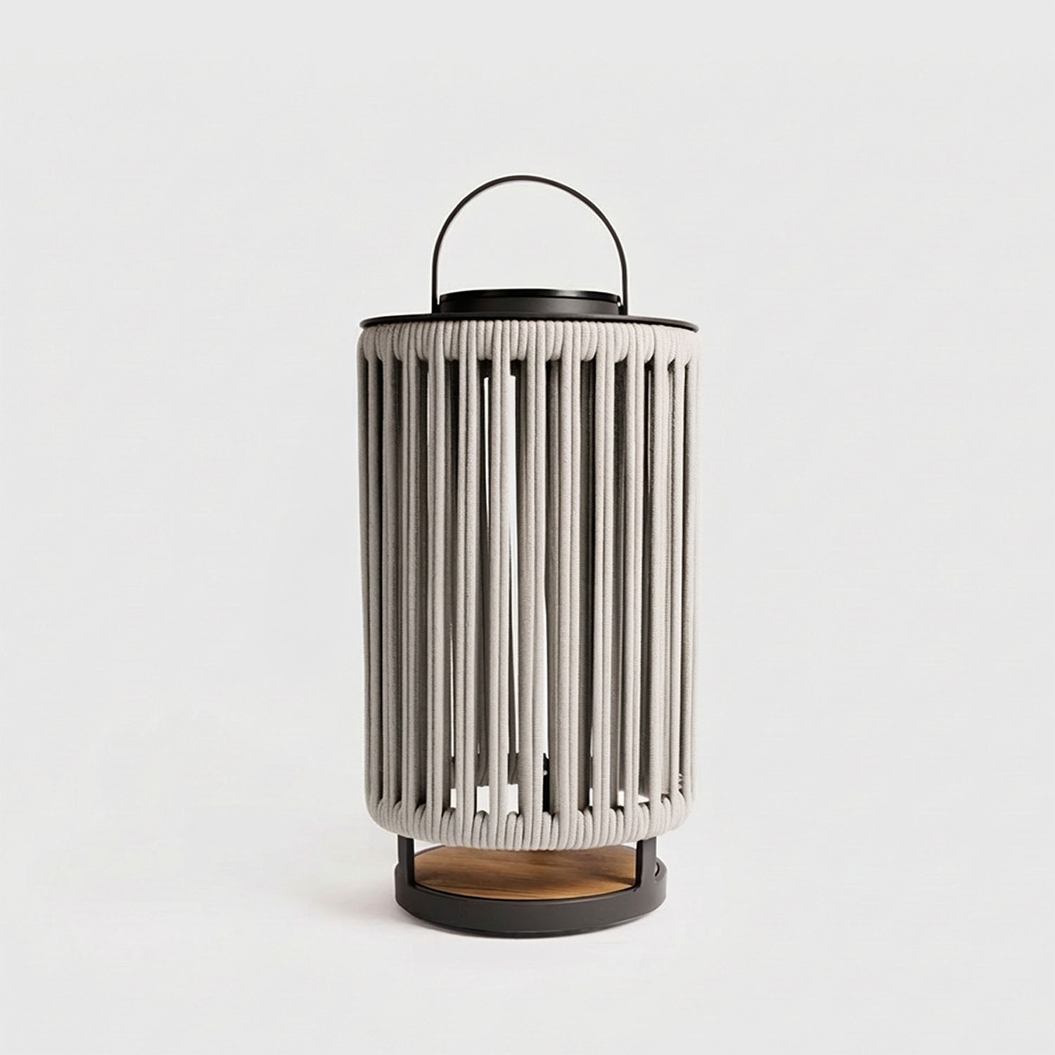 Die Basis aus indonesianischem Teak vervollständigt die natürliche Ästhetik und sorgt für Stabilität. Der in die Struktur integrierte Griff ermöglicht es Ihnen, die Leuchte überall aufzustellen oder aufzuhängen.