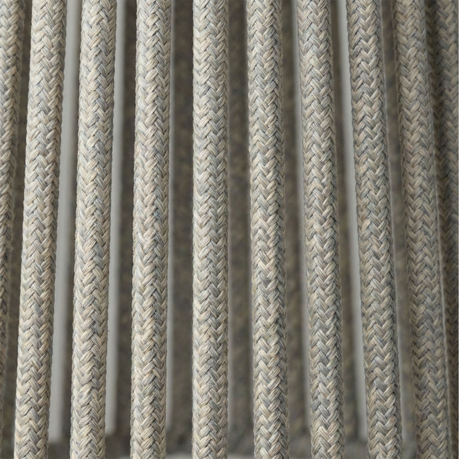 Geflochtenes Nylon in radialem Flechtmuster, UV-beständig behandelt. Es bleicht bei Sonneneinstrahlung nicht aus und behält langfristig die Spannung des Geflechts.