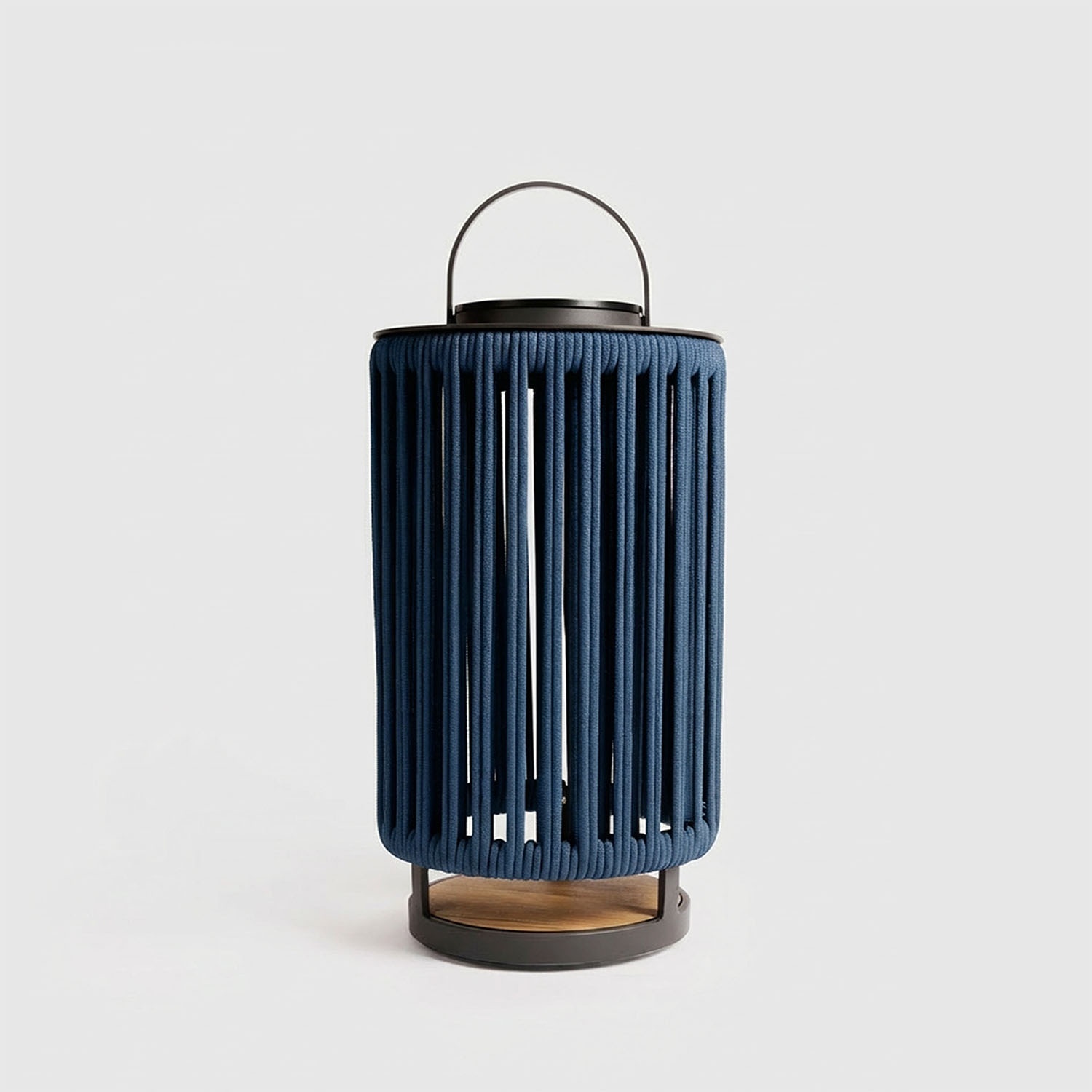 Die Basis aus indonesianischem Teak vervollständigt die natürliche Ästhetik und sorgt für Stabilität. Der in die Struktur integrierte Griff ermöglicht es Ihnen, die Leuchte überall aufzustellen oder aufzuhängen.