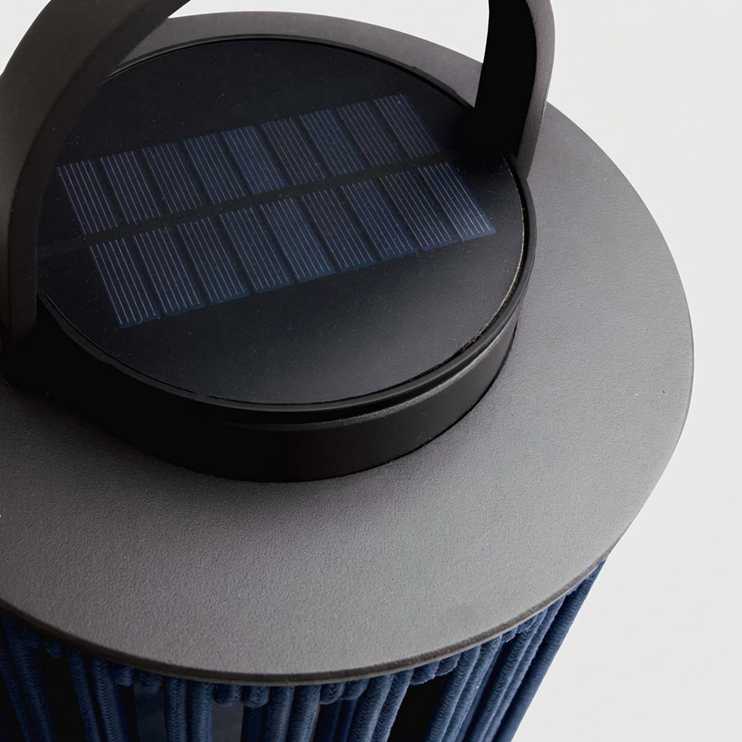Das Nylonseil ist nach einem präzisen radialen Muster geflochten. Wenn die LED aufleuchtet, zeichnet jeder Lichtstrahl, der zwischen den Seilen hindurchfiltert, ein strahlenförmiges Muster auf die umliegenden Flächen: den Tisch, die Wand, den Terrassenboden. Das ist kein zufälliger Effekt. Es ist Geometrie, angewandt auf die Beleuchtung.
