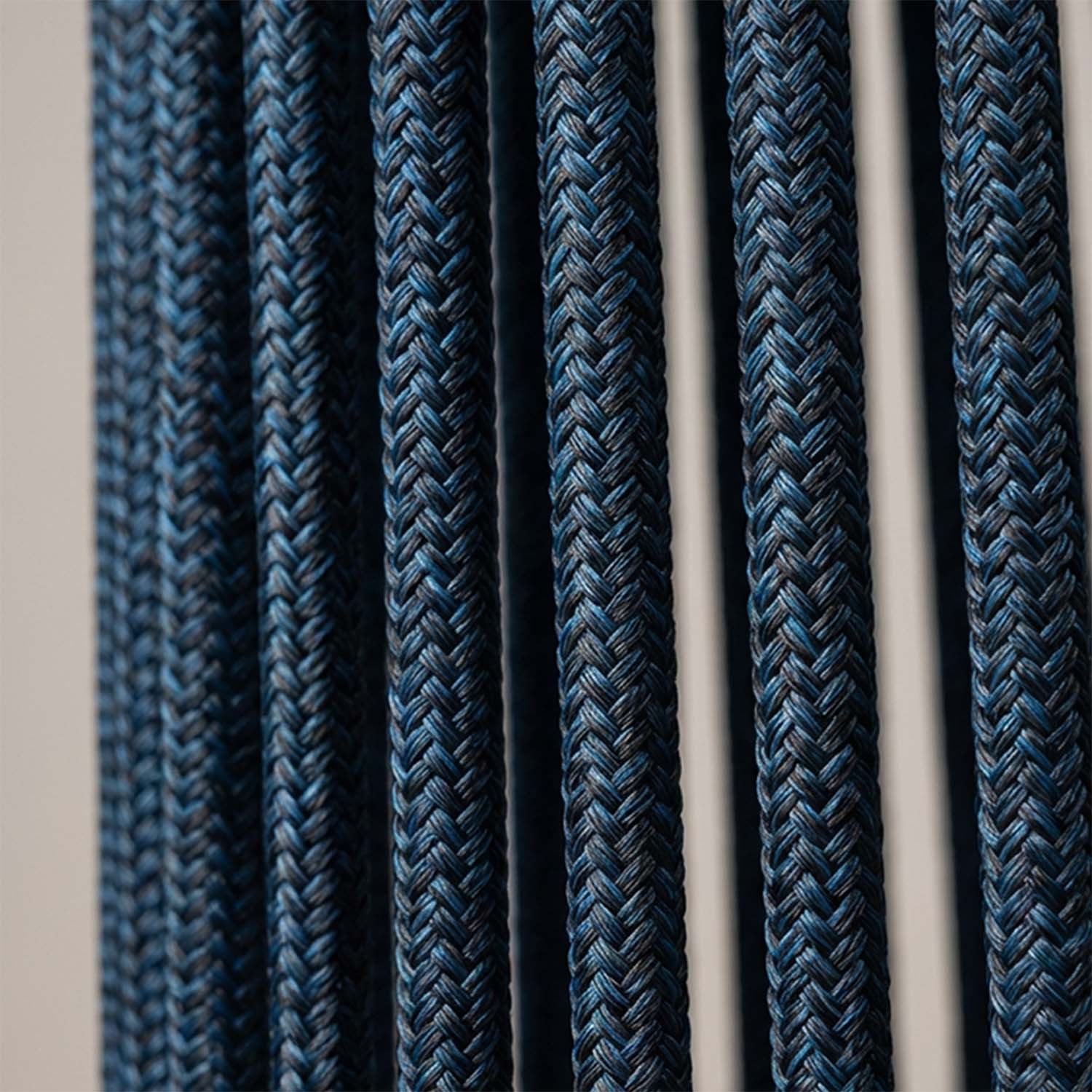 Geflochtenes Nylon in radialem Flechtmuster, UV-beständig behandelt. Es bleicht bei Sonneneinstrahlung nicht aus und behält langfristig die Spannung des Geflechts.
