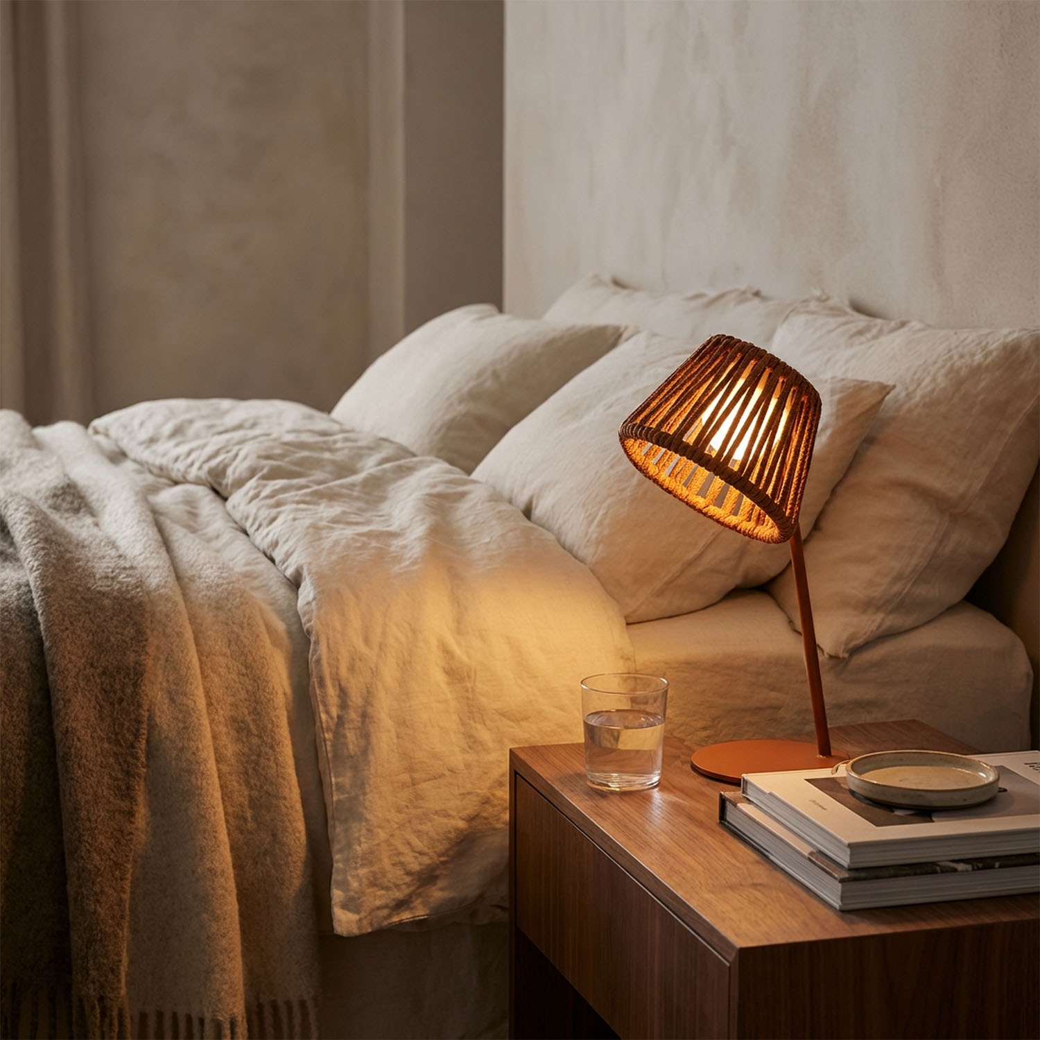 Warmes Licht zum Lesen. Wird tagsüber bequem auf dem Nachttisch aufgeladen.