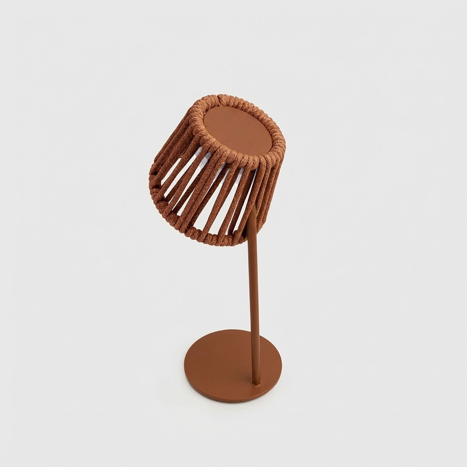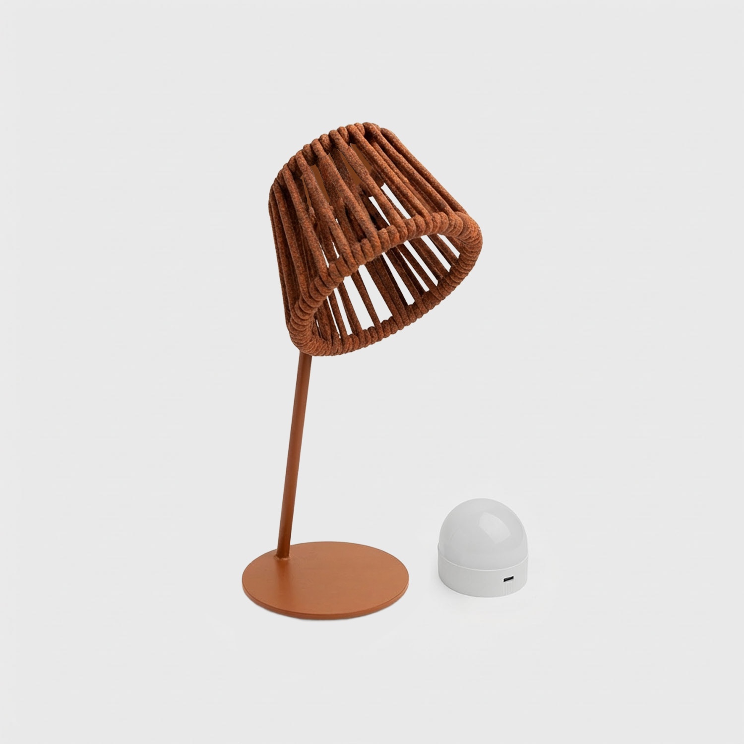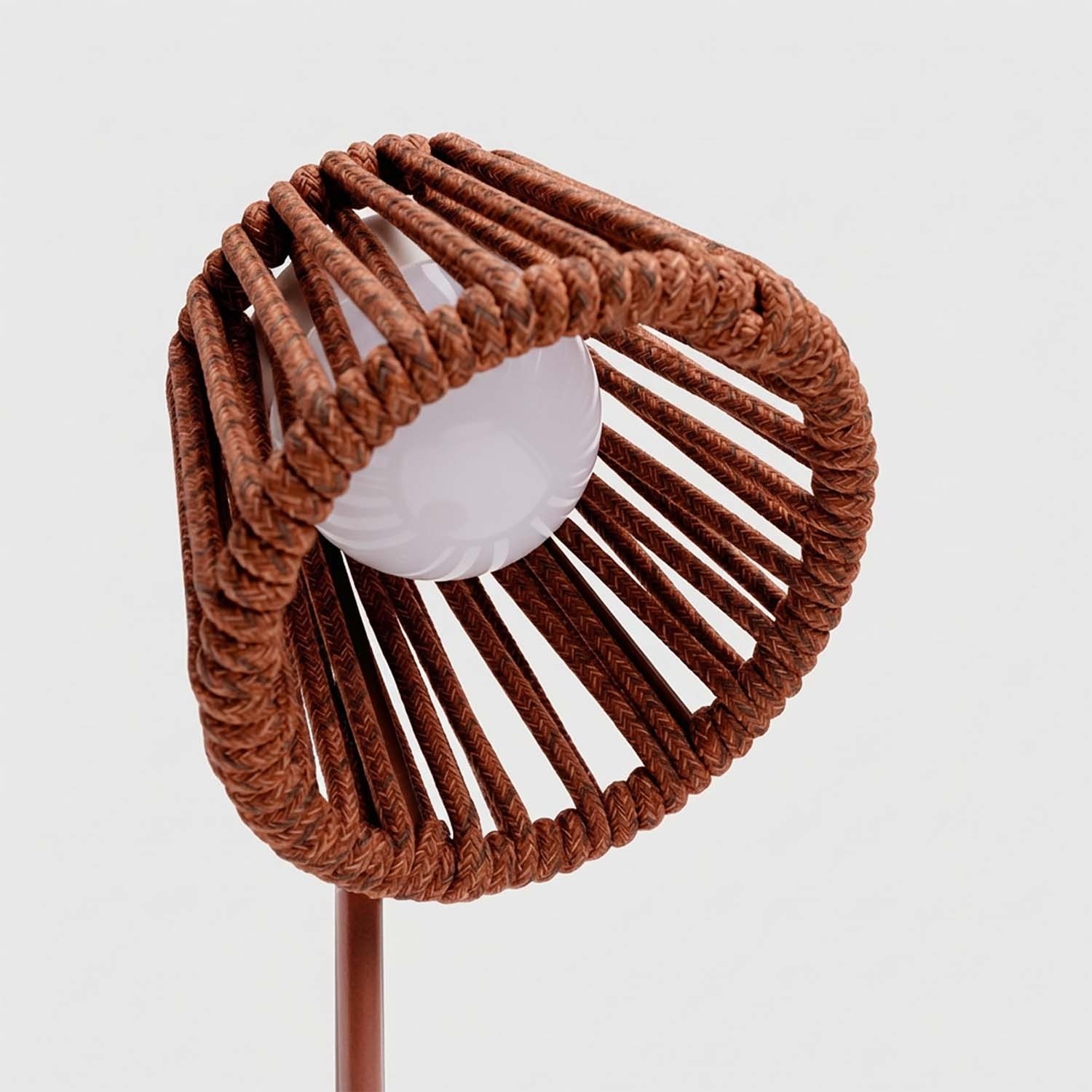 Mini Ropelle ist eine kabellose, wiederaufladbare Tischleuchte, entworfen vom Maanta-Designatelier. Sie gehört zur Rope-Familie: dieselbe Olefin-Outdoor-Kordel, dieselbe Designsprache wie die Stehleuchte Ropelle – im kompakten Format von 13 × 31,5 cm. Ihr besonderes Merkmal ist der Mag-Leuchtkolben, der sich von der Leuchte abnehmen lässt und separat über USB-C aufgeladen werden kann.