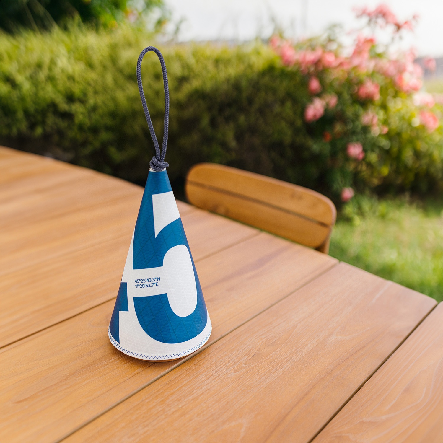 - Hochwertige Materialien: Holzsockel und nautischer Stoffkegel
