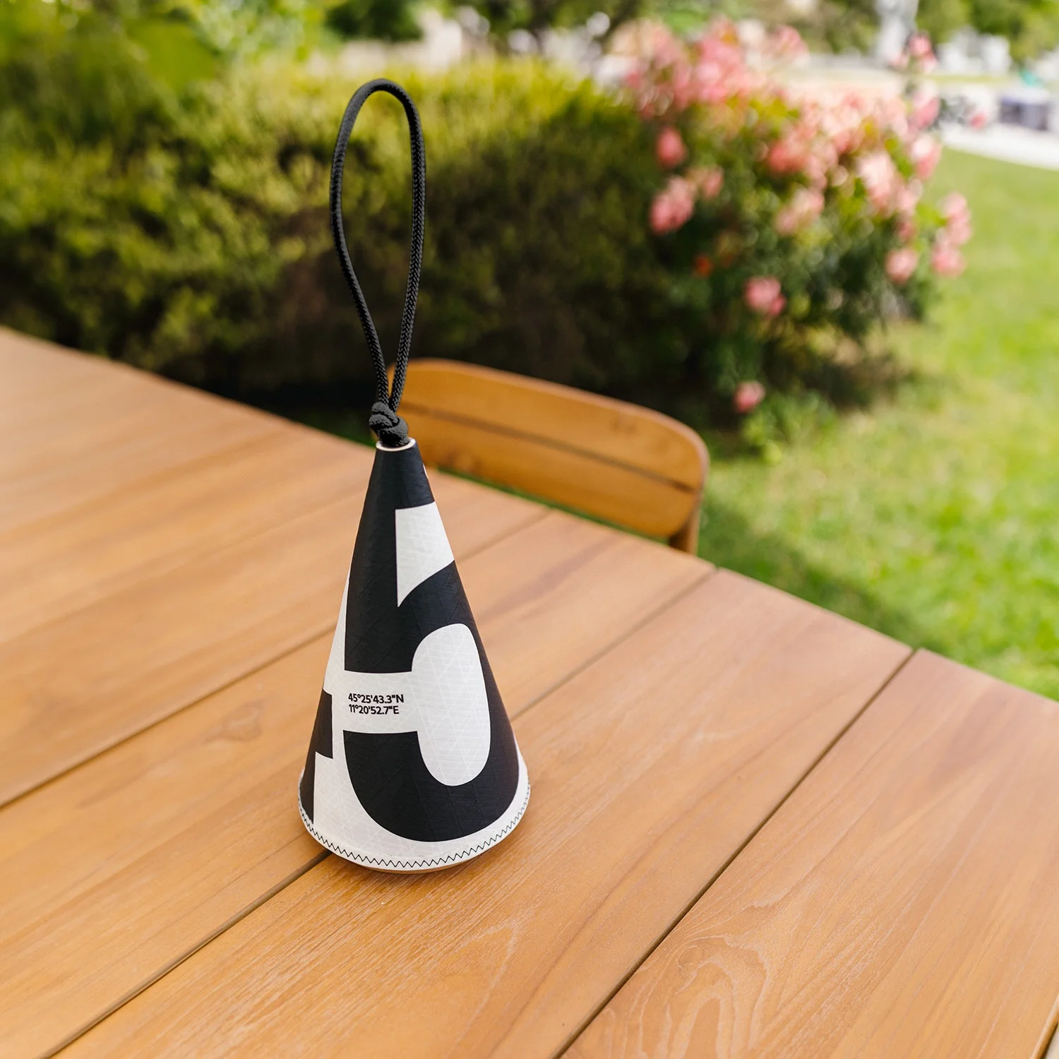 • Hochwertige Materialien: Holzsockel und nautischer Stoffkegel