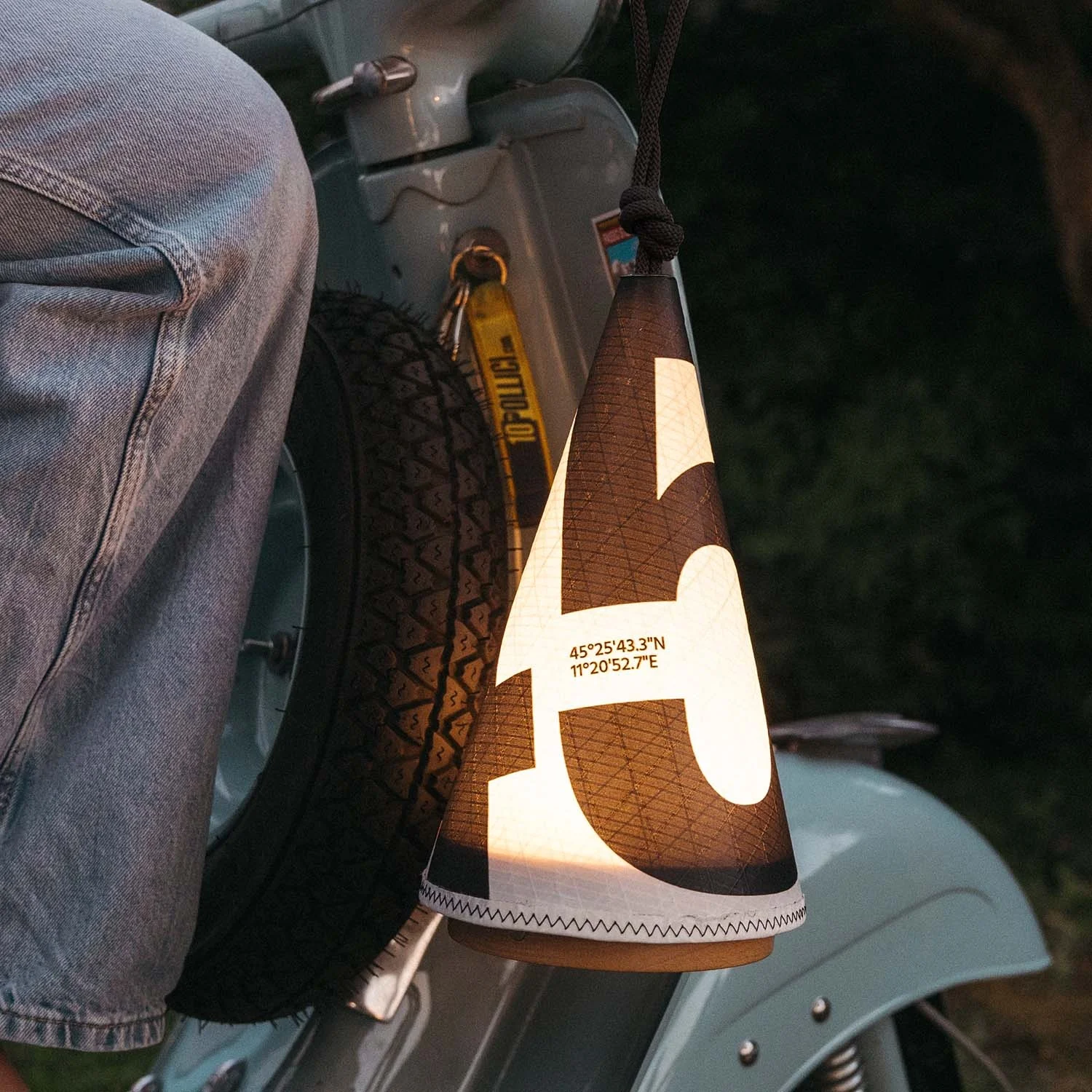 Sie kann als Tischlampe in Kombination mit dem unserem Produkt Chiglia verwendet werden oder am diagonalen Band der Maanta-Segel aufgehängt werden.