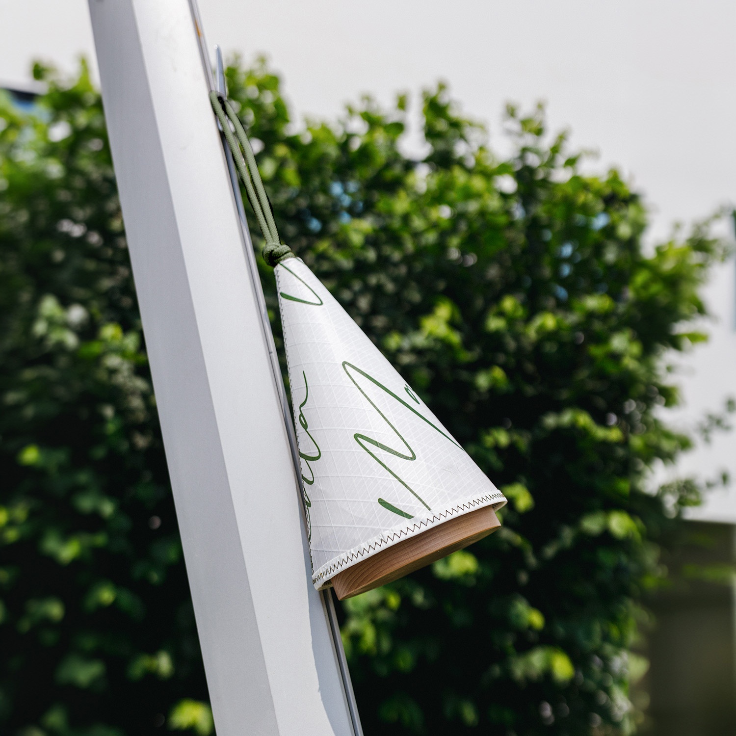 - Hochwertige Materialien: Holzsockel und nautischer Stoffkegel
