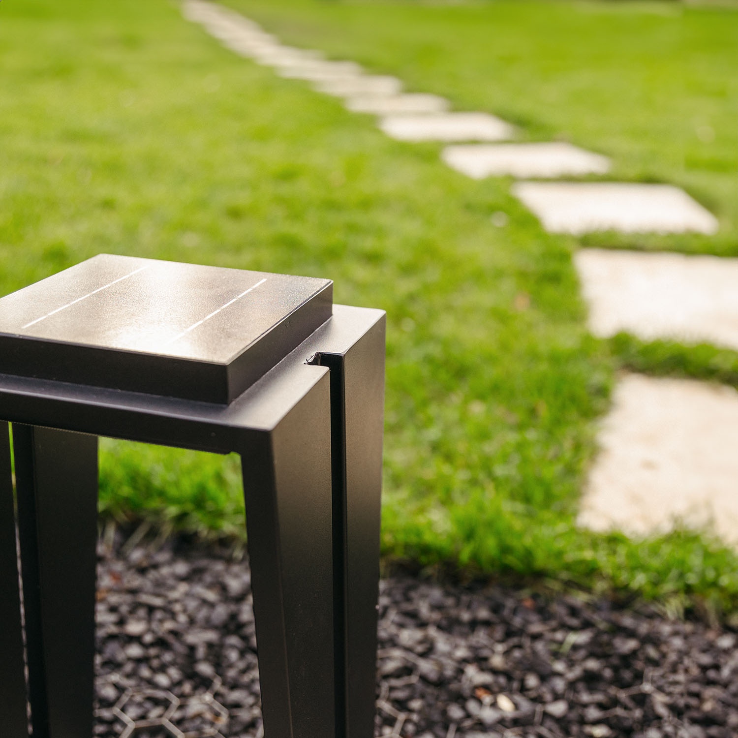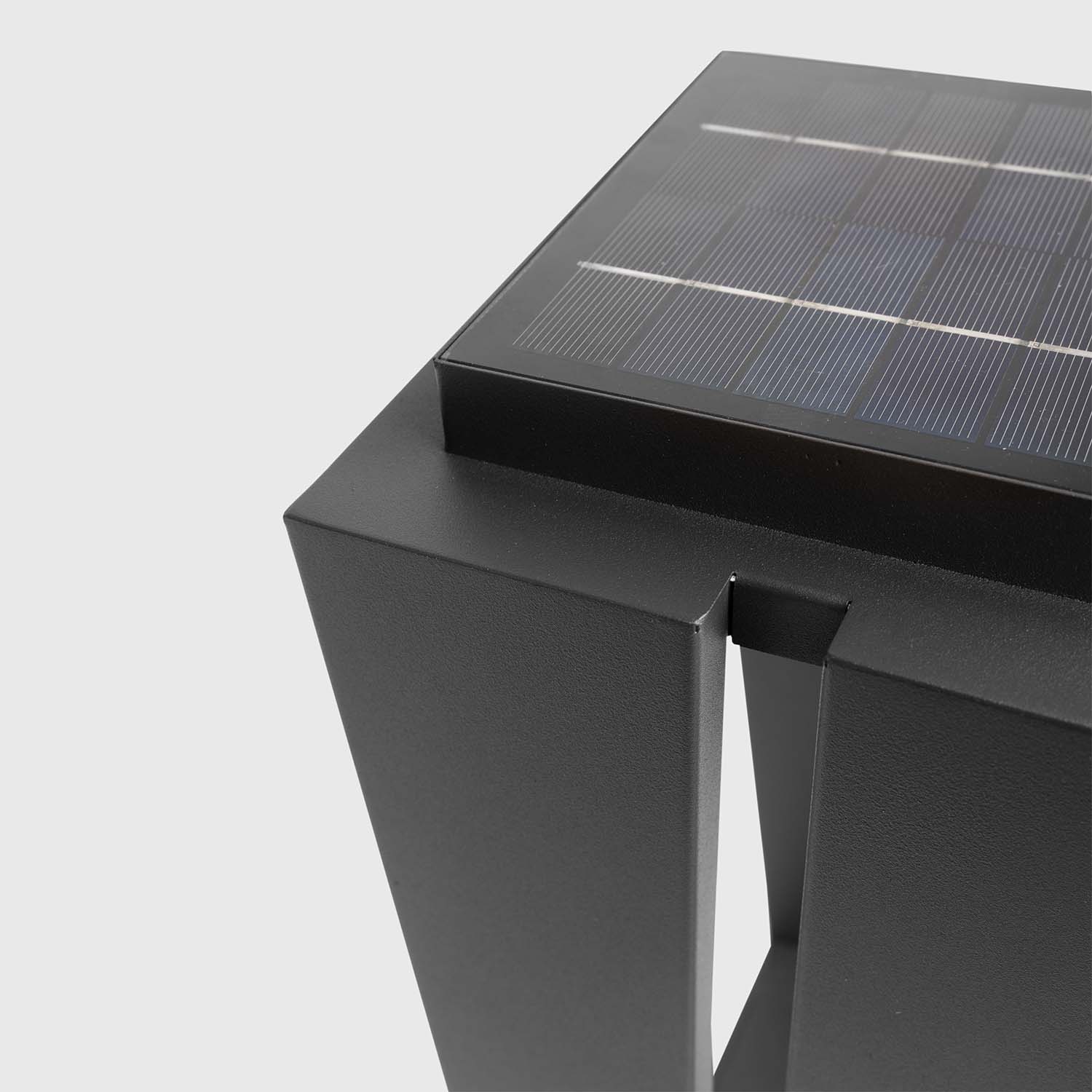 Solar ISOSS ist eine designstarke Außenleuchte mit integriertem Solarpanel und Lithiumbatterie.