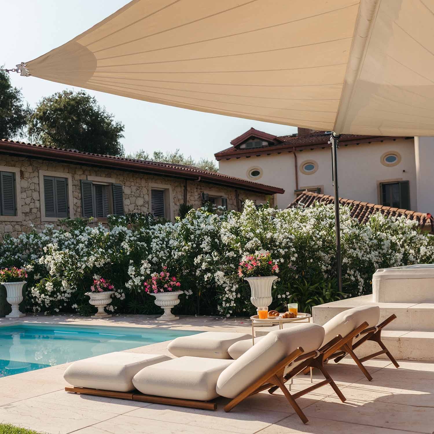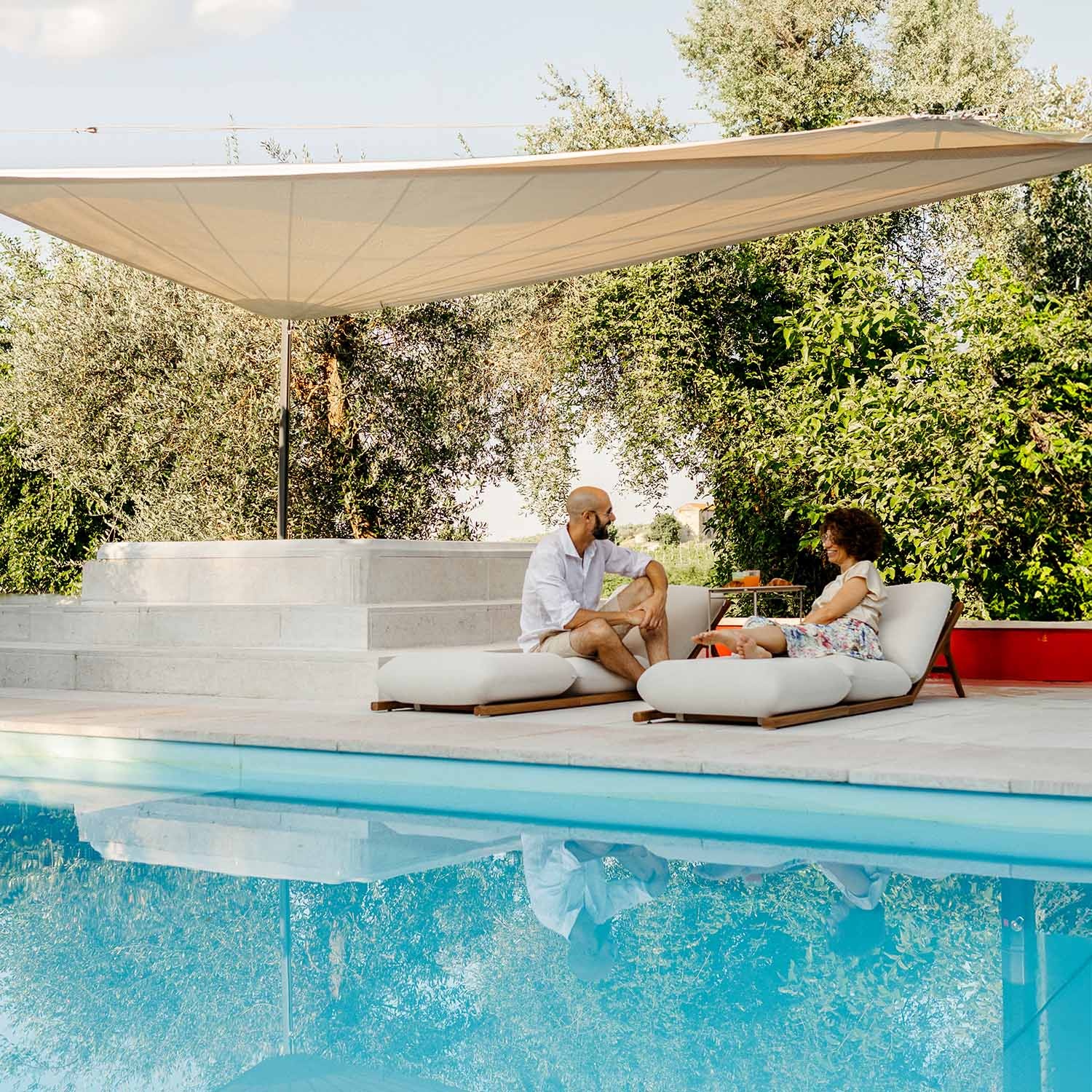 Neben der Vielseitigkeit begeistert Tuga weiterhin mit seiner Kombination aus italienischem Design und hochwertigen Materialien. Das zertifizierte FLEGT-indonesische Teakholz gewährleistet die Herkunft aus nachhaltigen Quellen, während das Polypropylen-Gerüst für Widerstandsfähigkeit und Langlebigkeit sorgt. Doch das wahre Herzstück von Tuga sind seine Kissen, die in Italien von Hand gefertigt werden und mit dem „Quick Dry“-Schaum ausgestattet sind, einem expandierten Polyurethan-System, das einen schnellen Wasserabfluss gewährleistet—ideal für den Außenbereich.