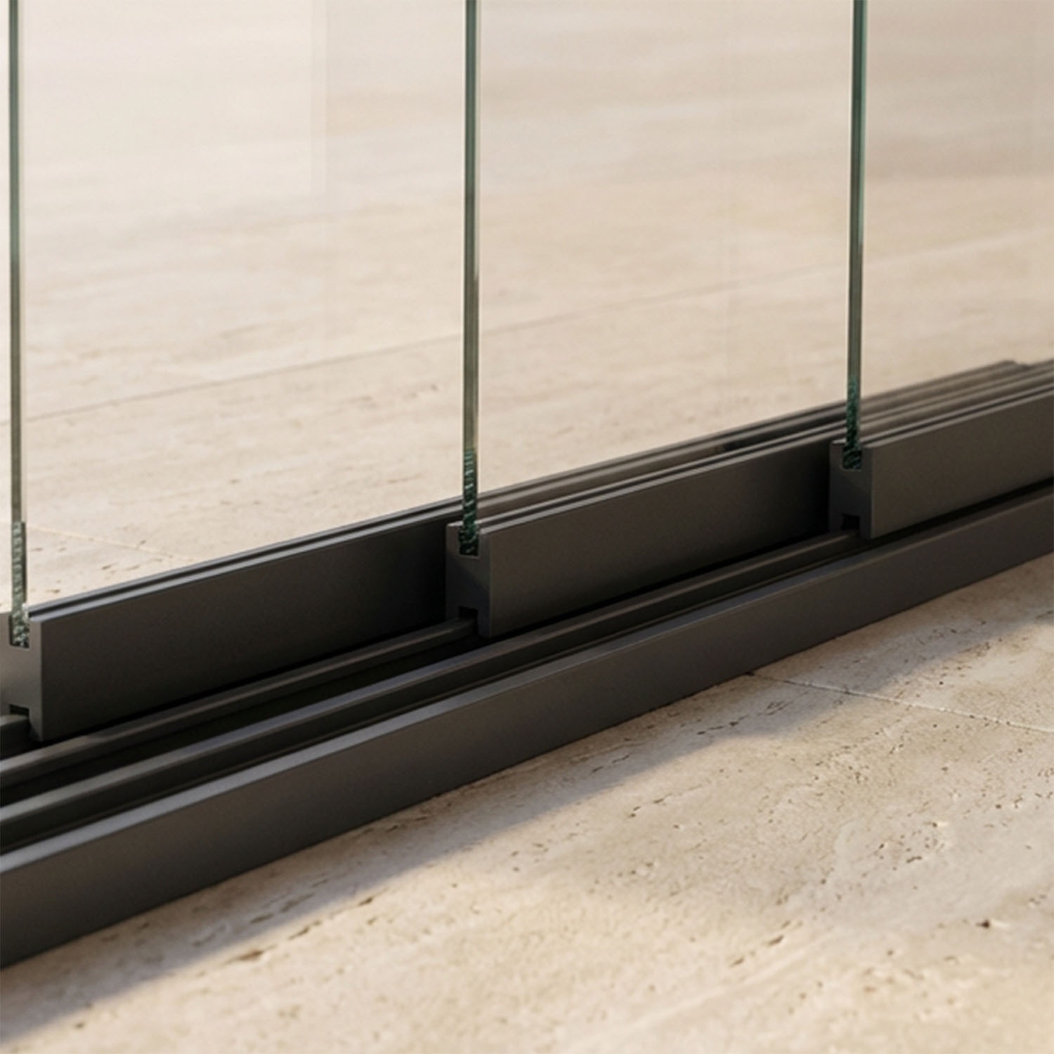 Das rahmenlose Schiebesystem fügt der Struktur kein visuelles Gewicht hinzu, es fügt Ihrem Raum mehr Monate hinzu. Es ist kein Zubehör: Es ist der Unterschied zwischen einem dekorativen Raum und einem gelebten Raum.