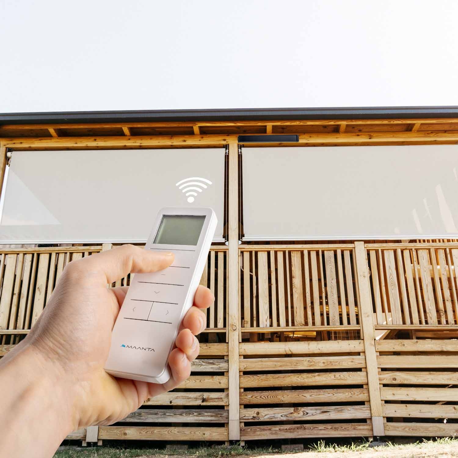 Endlich können Sie Ihre Senkrechtmarkise von überall öffnen oder schließen.