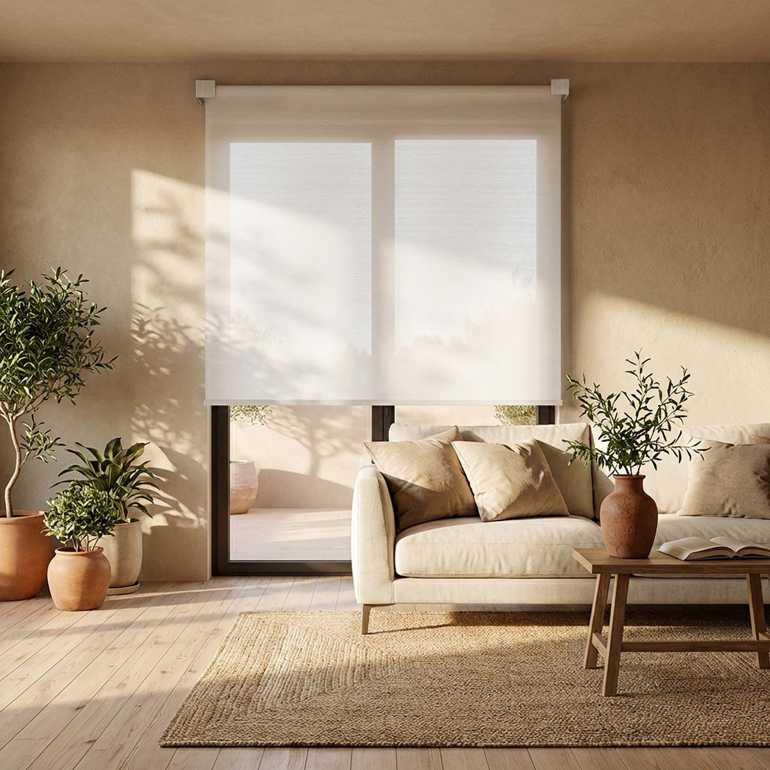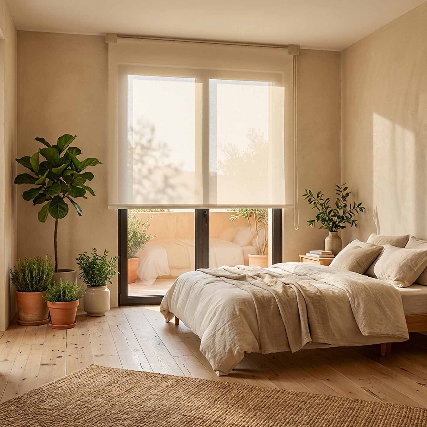 Das hängt vom Verwendungszweck ab: Für das Schlafzimmer empfehlen wir verdunkelnde Innenrollos (Blend oder Canvas, Privacy 4) für vollständige Dunkelheit. Für Wohnzimmer, Bad und Büro empfehlen wir lichtfilternde Rollos (Horizon, Fine Line), die das Licht streuen und Reflexionen reduzieren. Für die Küche eignen sich transparente Stoffe (Satin, Brush), die maximale Helligkeit gewährleisten.