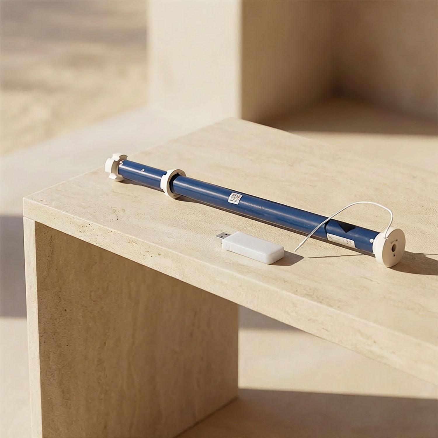 Wiederaufladbarer Rohrmotor mit integrierter Lithium-Batterie. Er wird direkt in die Aufrollwelle der Recta oder Kyma eingesetzt, wahlweise rechts oder links.