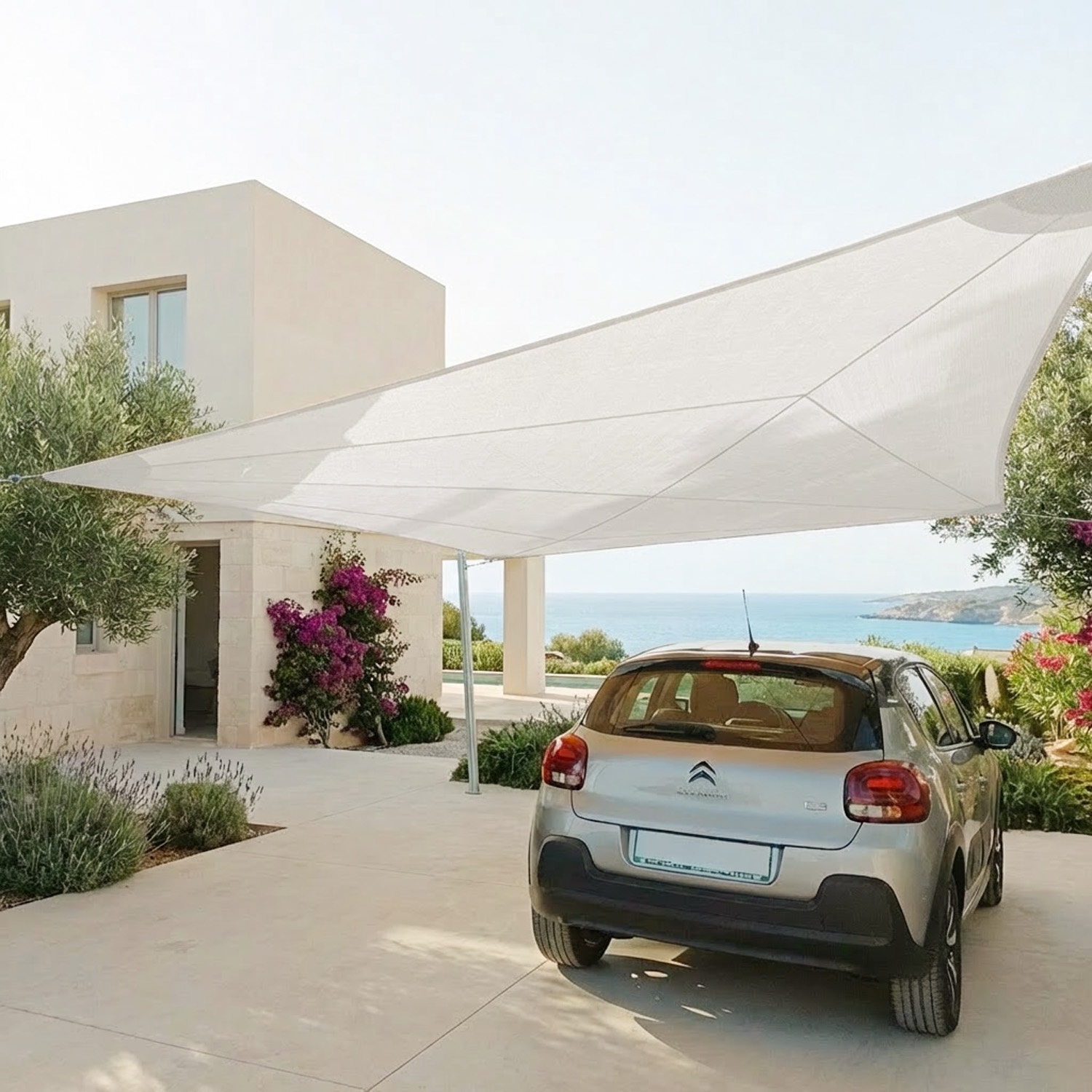 Das atmungsaktive Segel ist die ideale Lösung für die Überdachung von Außenstellplätzen. Das robuste Meshnet®-Gewebe hält extremsten Belastungen wie Hagel und starkem Wind stand.